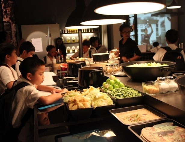 Com estandes interativos que imitam um restaurante, uma cozinha e um mercado de rua, a exposição explora as técnicas de decomposição dos alimentos.
